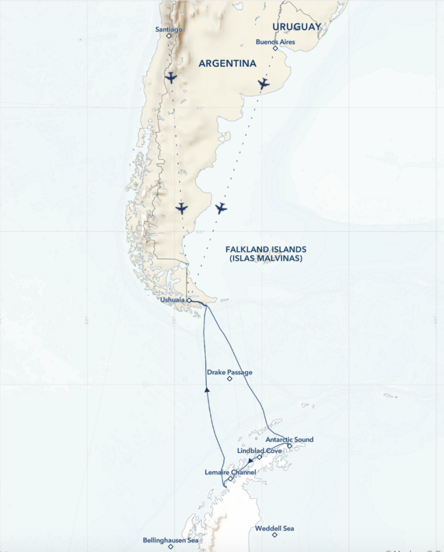 Disembark in Ushuaia. Fly by private charter to Santiago and transfer to the airport for your flight home.